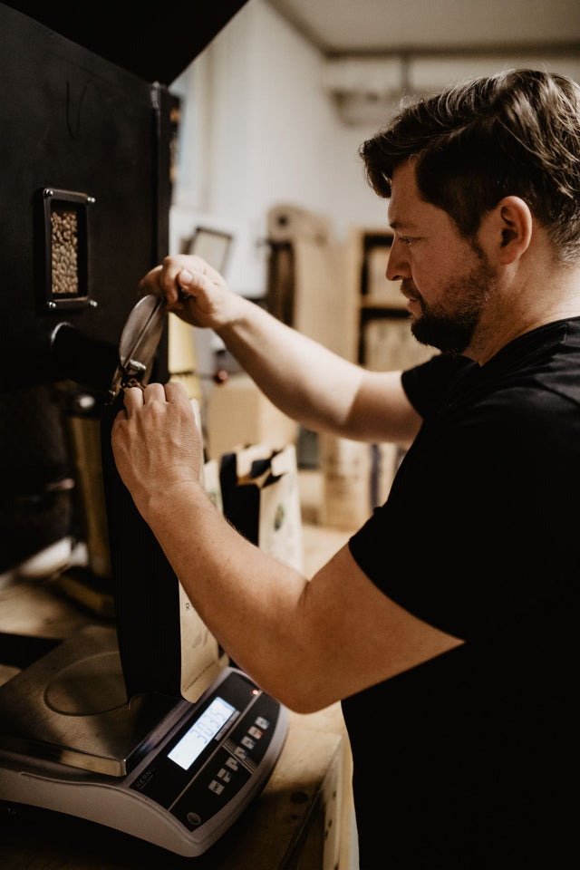 „Mit größter Hingabe röste ich hochwertigen Rohkaffee in Bioqualität aus den besten Kaffeeanbauländern dieser Welt. In all meinen Röstungen stecken viel Zeit, Erfahrung und Kreativität. Das volle Geschmackspotential jeder Bohne auszuschöpfen, darin liegt meine Berufung.“